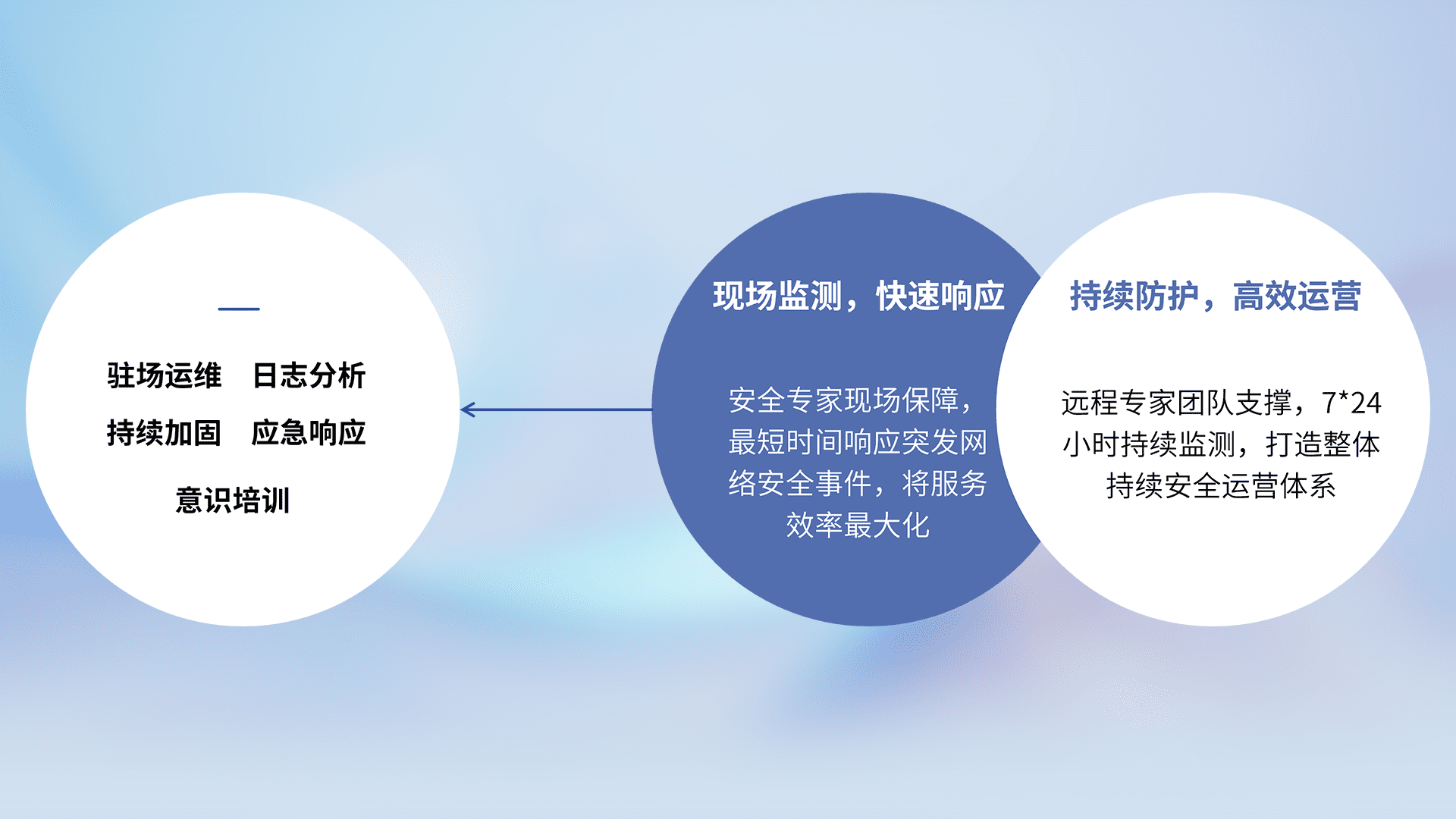 7X24小时持续监测安全事件,保持安全策略有效性,降低资产脆弱性风险,,精准拦截黑客攻击,,减少被黑客利用的机会,,,,第一时间遏制,,,,降低损失。。。。